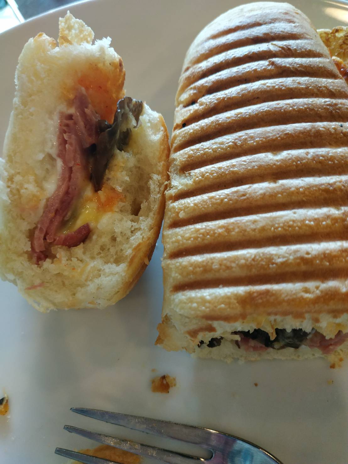 SMOKED BEEF MUSHROOM & CHEESE PANINI (IDR 46K) AND ASIAN DOLCE LATTE *tall (IDR 50K)